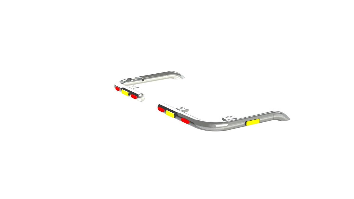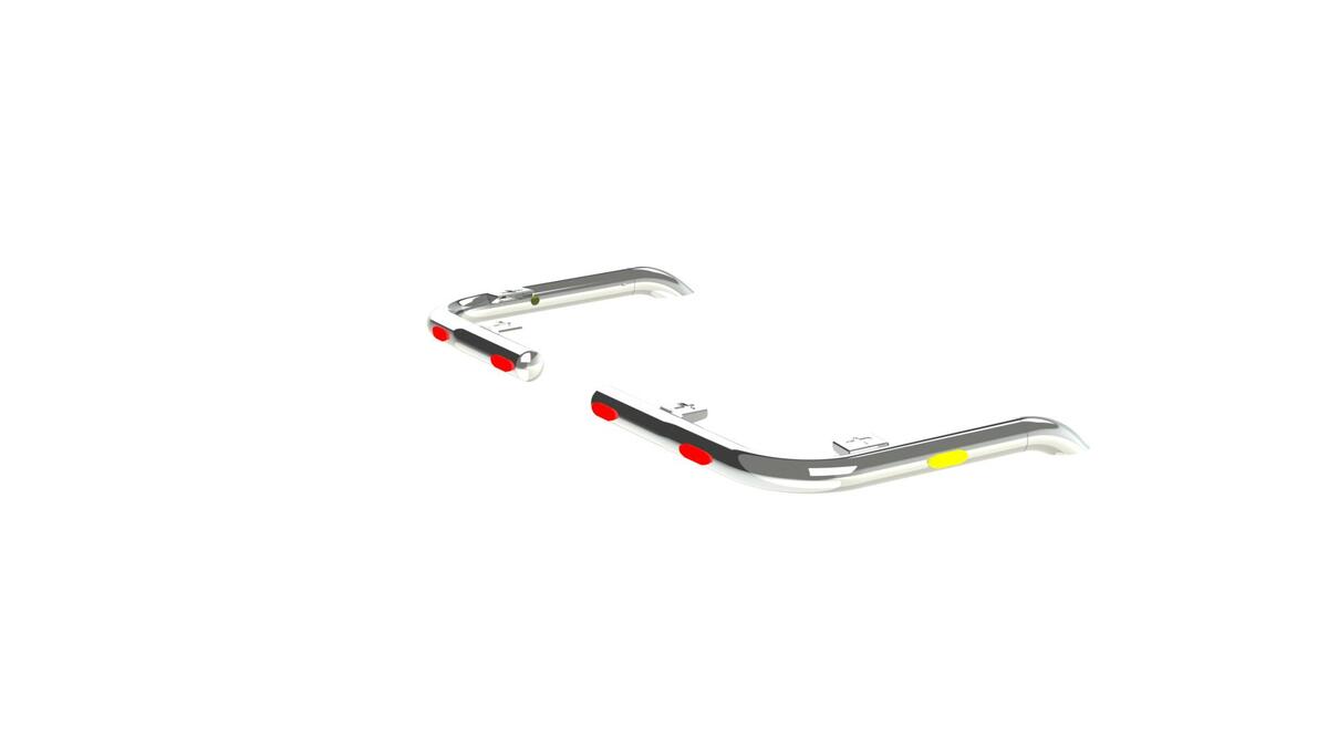 Die Halterung ist ein stilvolles Zubehör, an dem Sie ganz einfach Arbeitsscheinwerfer befestigen können. Sie kann auch mit Umrissleuchten ausgestattet werden, um die Sichtbarkeit im Straßenverkehr weiter zu verbessern. Die Montage ist schnell und einfach.
